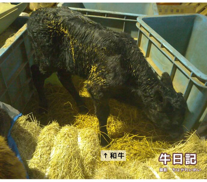 20分ほどかけて、全身真っ黒な子牛が生まれた。どう見てもホルスタインじゃない。