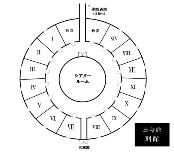 「まずシアタールームを出た目の前が、本館へとつながる連絡通路か」