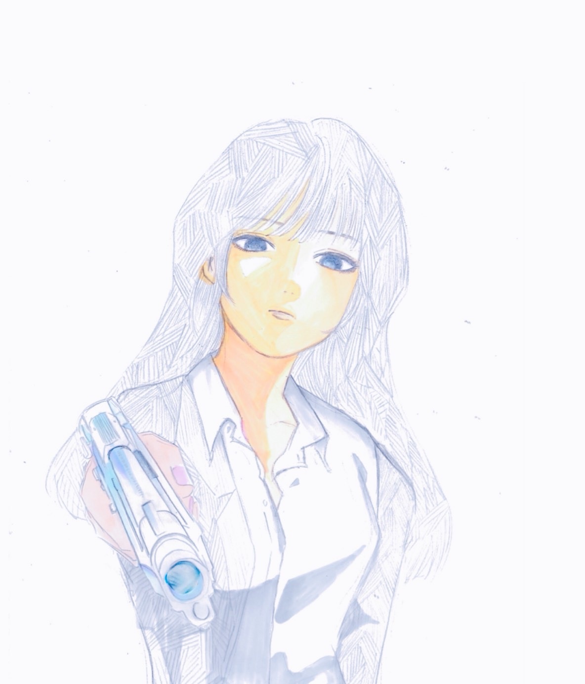 彼女のしなやかな四本の指がグリップを掴んでいて、残る人差し指は何かに引っかかっている。