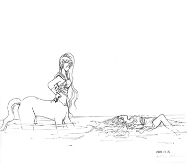 エイルの浮かんでる場所は深く・・馬の下半身が半分近く水の中である