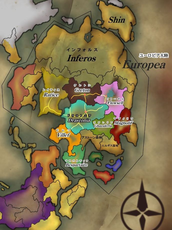 さらに西側には海を越えた先に『レイティス共和国』が存在している。この国は領土がドラストニアに匹敵するほど広大で水資源も豊富。多くの港町からなる大規模な市場はドラストニアの農産、畜産物の流通にも利用されている。海洋国家ということもあって海軍は脅威的な戦力を誇っている。技術力も非常に高く新技術の開発も進められているようだが、近年は「海賊」と不法移民という問題を抱えているようだ。