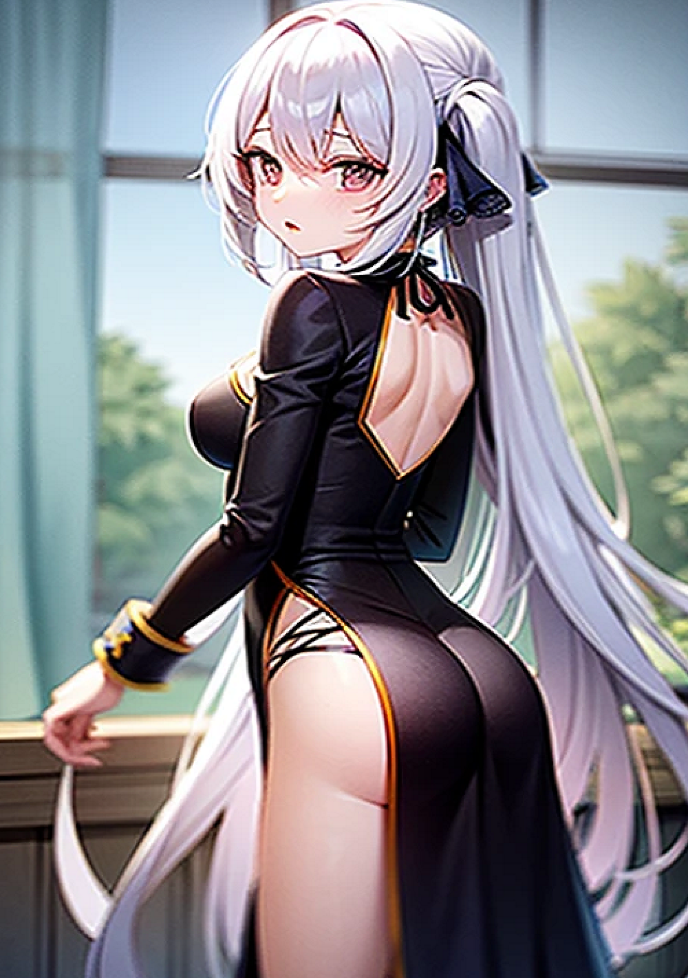 アリアの銀髪と黒のリボンは儀式を引き立て、聖女の美しさを一層際立たせるだろう。