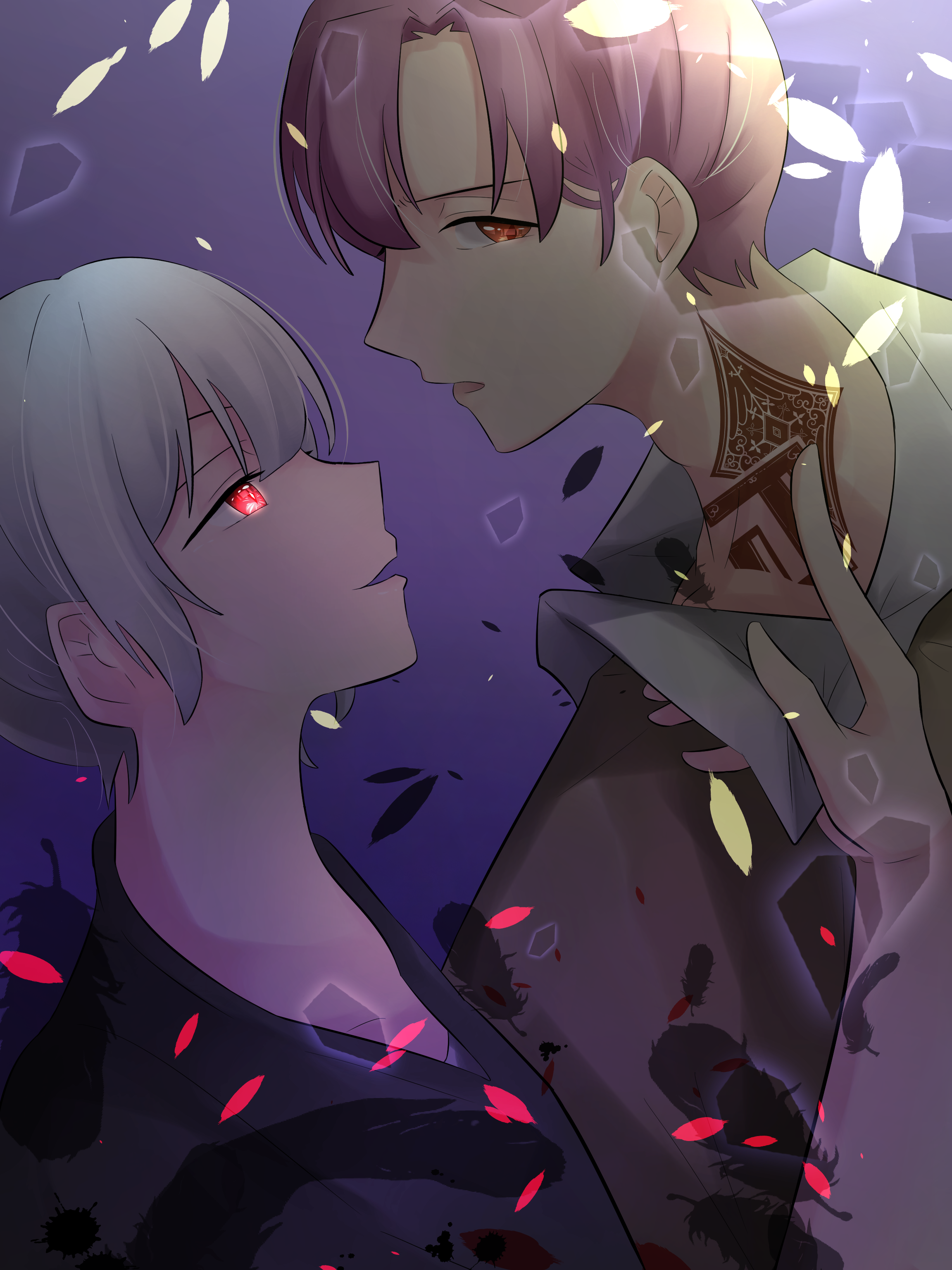 カラスは頭の先から尾羽の先まで、そして足の節も爪や嘴さえも、彼女の御髪と同じ、シミ一つない美しい銀色をしている。そしてその目もまた、彼女と同じく赤色だ。