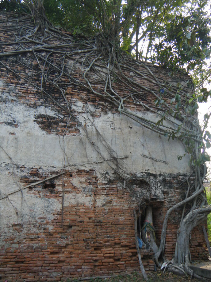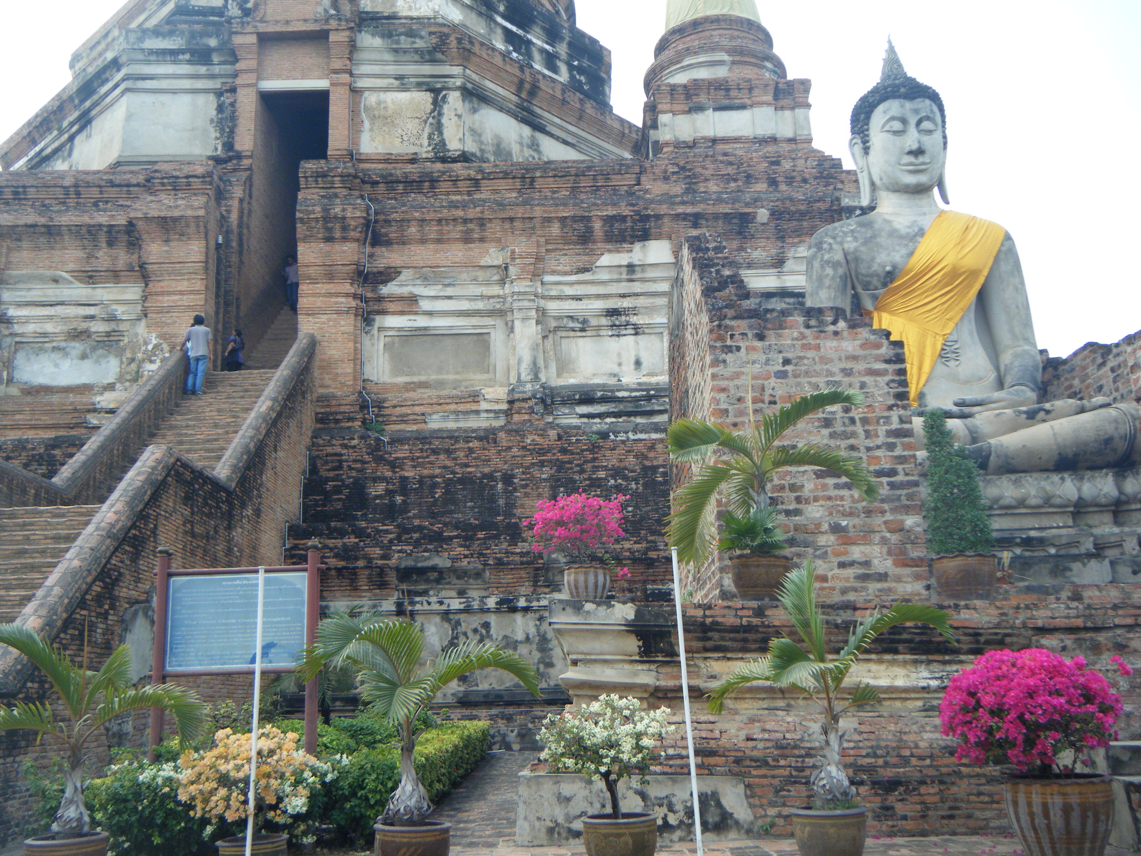 アユタヤっていうのはバンコクのちょい北、日本でいうところの日光って感じかな。スコータイ遺跡ってのがあるんだ。石作りの寺院というか祈祷所みたいな、まあ簡単に言うと石塔がいっぱい立ってる、そんなところだよ。石と言っても削り出しではなくレンガ積みでね、南国の強烈なスコールと容赦ない陽射しでだいぶ傷んでいる。まあうん、そんな感じ。