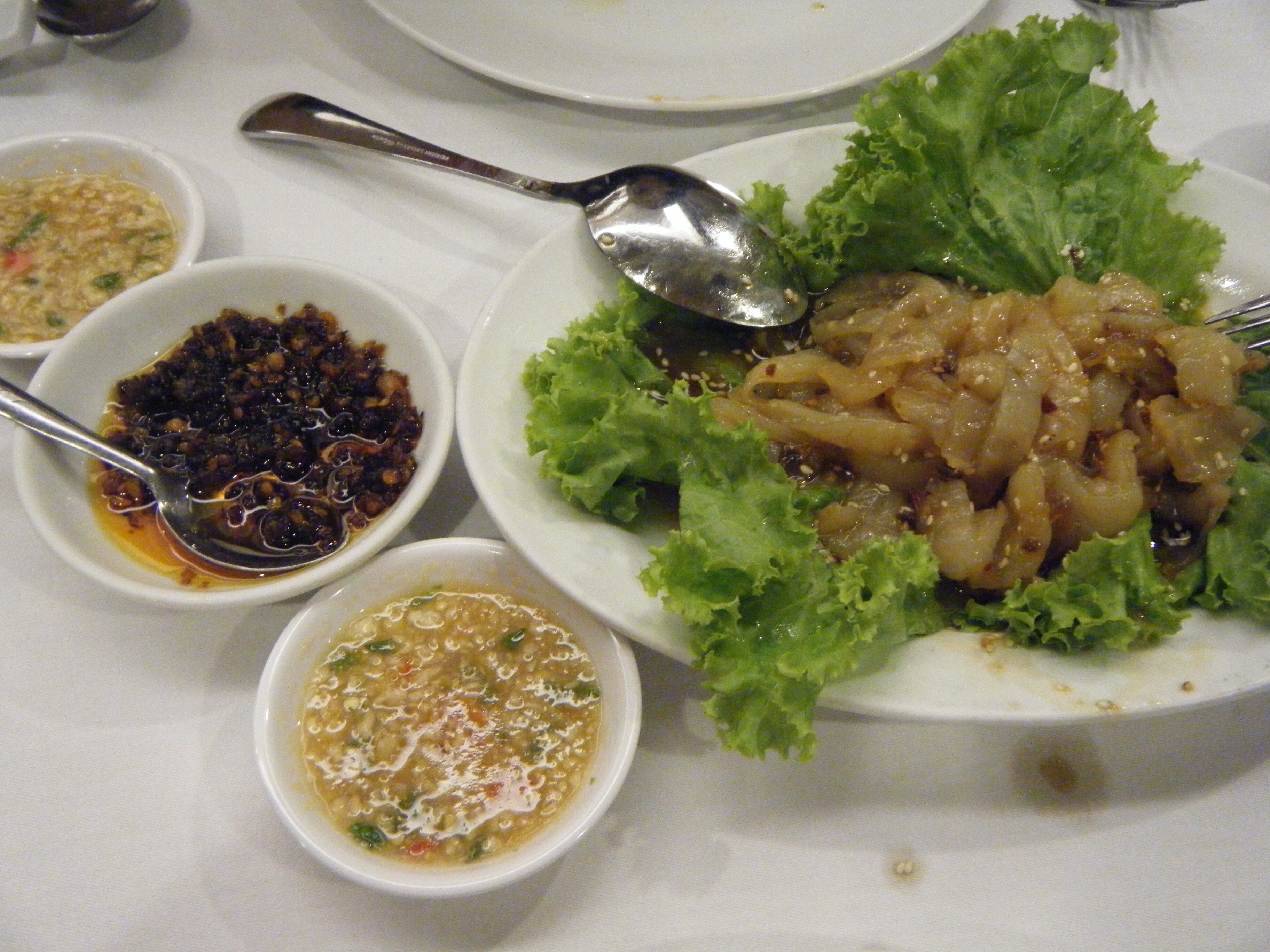 このタレはクラゲに付いてきたんだけどクラゲ専用タレというわけじゃなくて、前菜や小皿料理を頼むともれなく付いてくる汎用タレで、あれこれ料理を頼むとタレだらけになってすげぇ邪魔になるんだ。