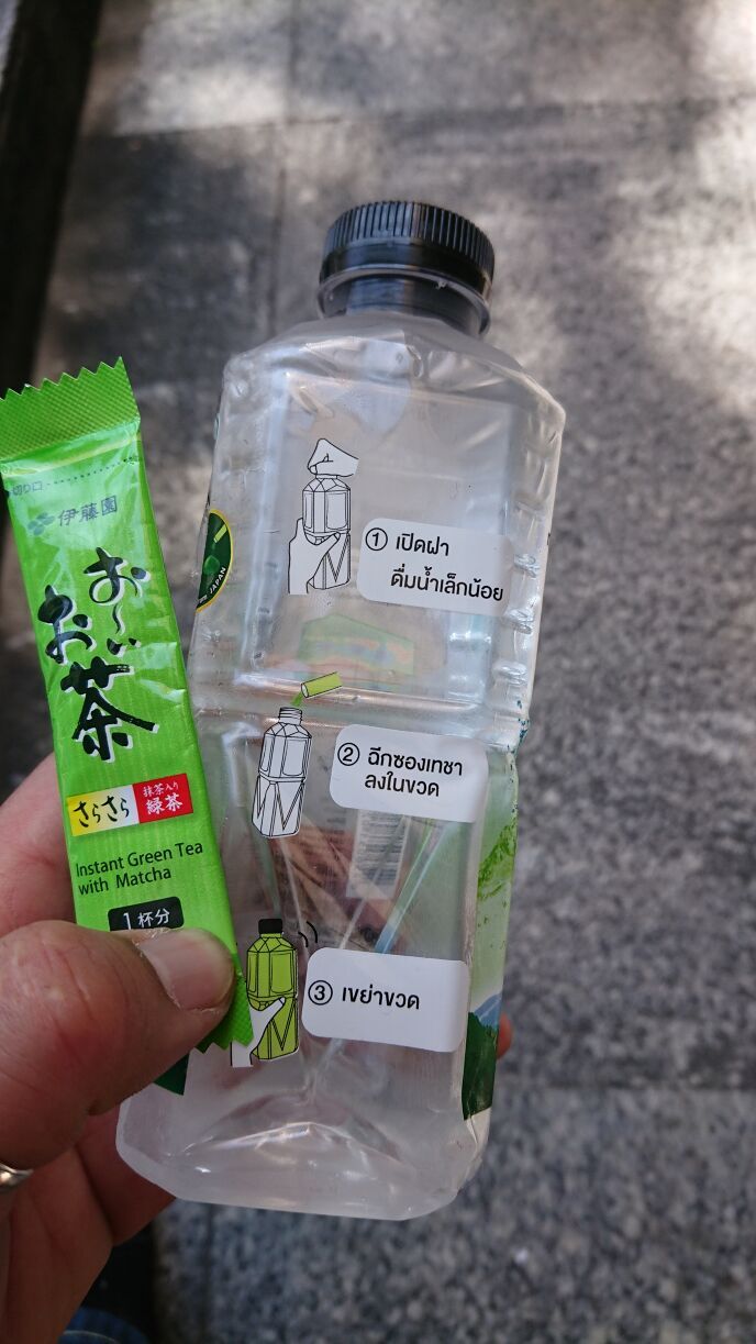 ペットボトルのお茶。これはいかにも日本企業っぽいけどオイシーとか言うタイ企業の「いちたん」というブランドの緑茶。甘い。日本人としては甘い緑茶は身体が受け付けないけど、タイでは日本でいう伊藤園くらいのメジャーなブランドみたいだね。