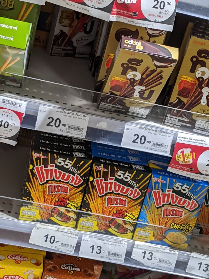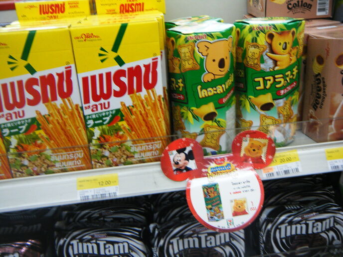 さらにコアラのマーチとラーブ味のプリッツ。コアラのマーチは日本と成分が違うらしい。コアラのマーチは一箱食べたらゲロ吐いたことがあるので個人的にはロッテのチョコ菓子はNG。ラーブ味のプリッツはおススメ。免税店でも売っているくらいなので大人買いしてお土産にするのがいいと思う。