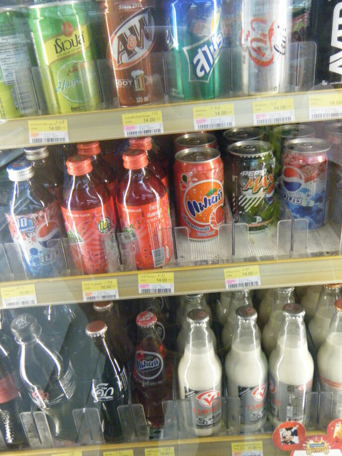 でね、タイにももちろんペットボトルはあるんだけど、お茶とかミネラルウォーターばっかりで炭酸ペットボトルは少ないね。