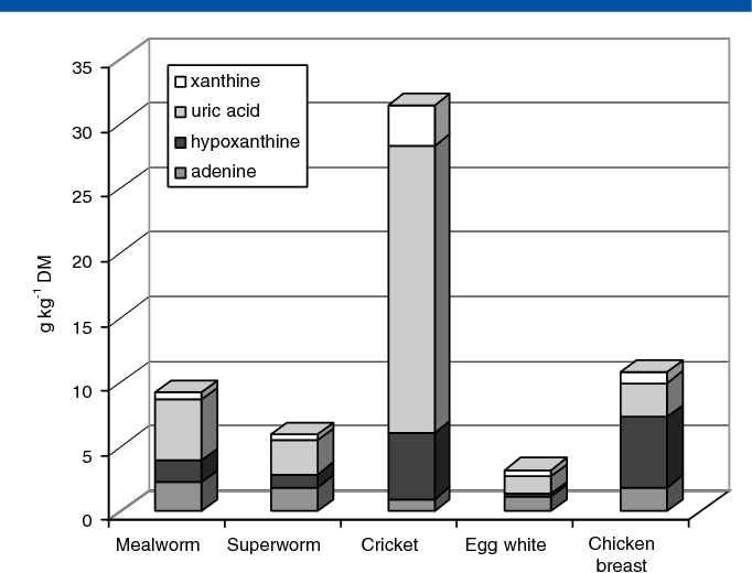 で、この画像から見るにコオロギは尿酸がブッ飛んで多い。飛びすぎるほどに多いね。