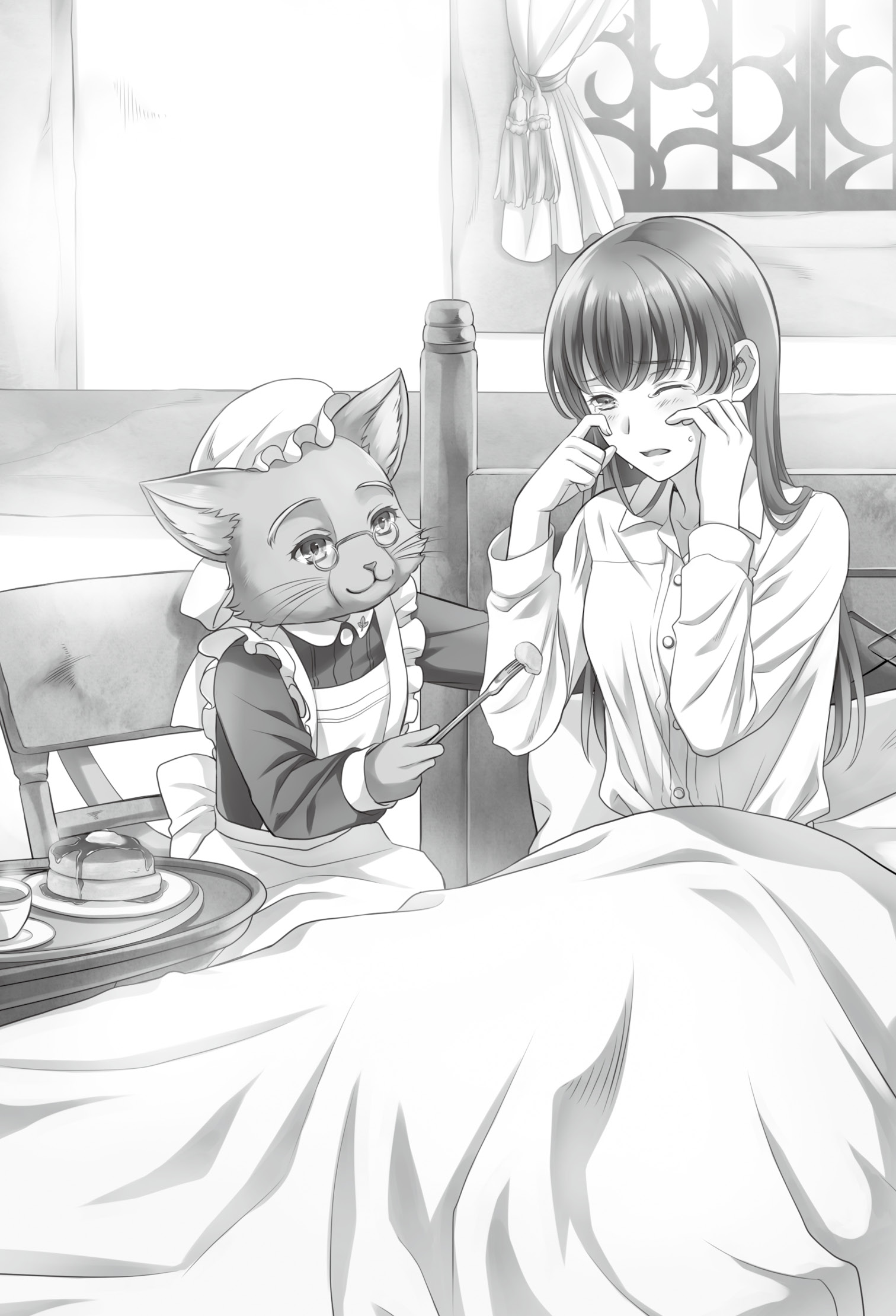 優奈はそう思ったが、シュトラエルと名乗る猫頭の老婆は、一口大に切り分けられたパンケーキをフォークに刺して、優奈の口元へと差し出してくる。