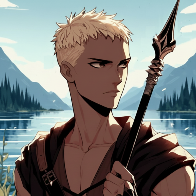 湖水に濡れて輝く金色の頭上から滴り落ちる銀水を意に介さず、男は膝頭で水面を掻き分け、