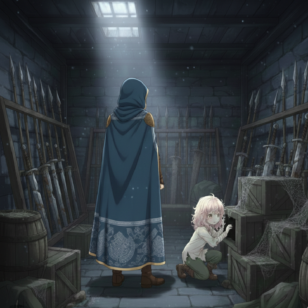 「ねぇ……なんかこの倉庫、武器ばっかじゃない? ほら、部屋の角に立ててあるのも」