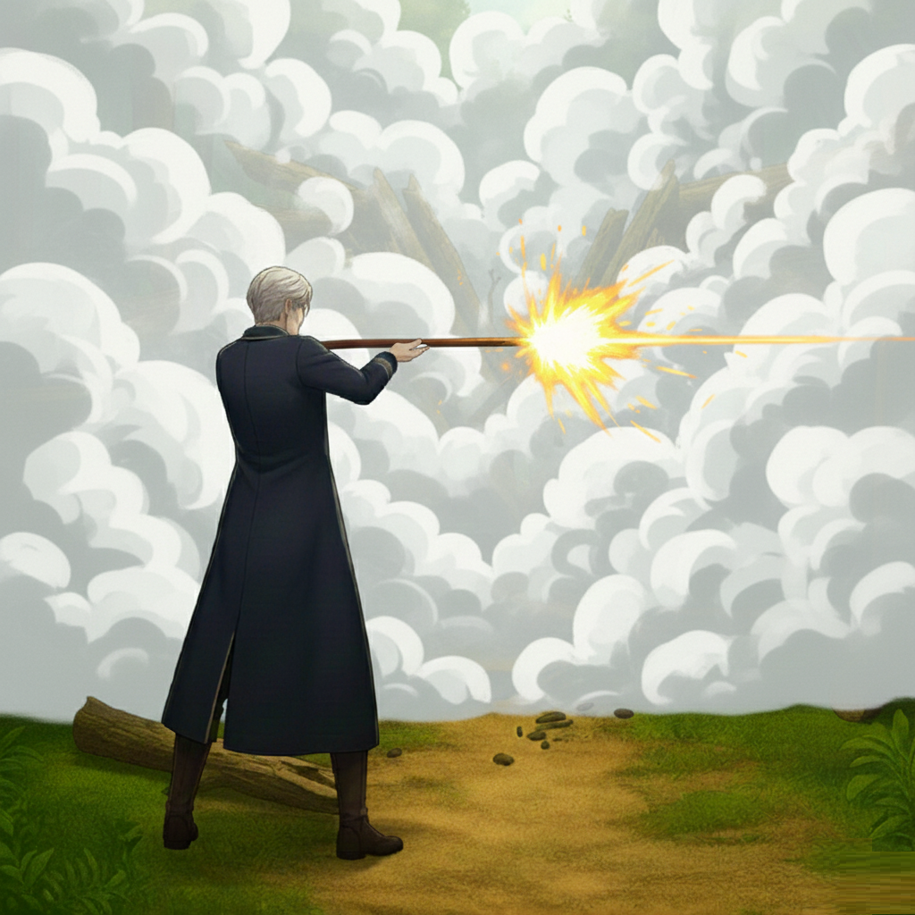 直後――ブワッと広範に拡がる煙幕が周囲を包み、三叉路は全てが墳霧の中に包まれた。