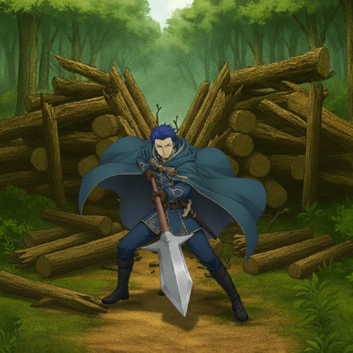 横倒しに積まれていた丸太の中央を上下真っ二つに引き裂き、中央に間隙を穿った一撃は、