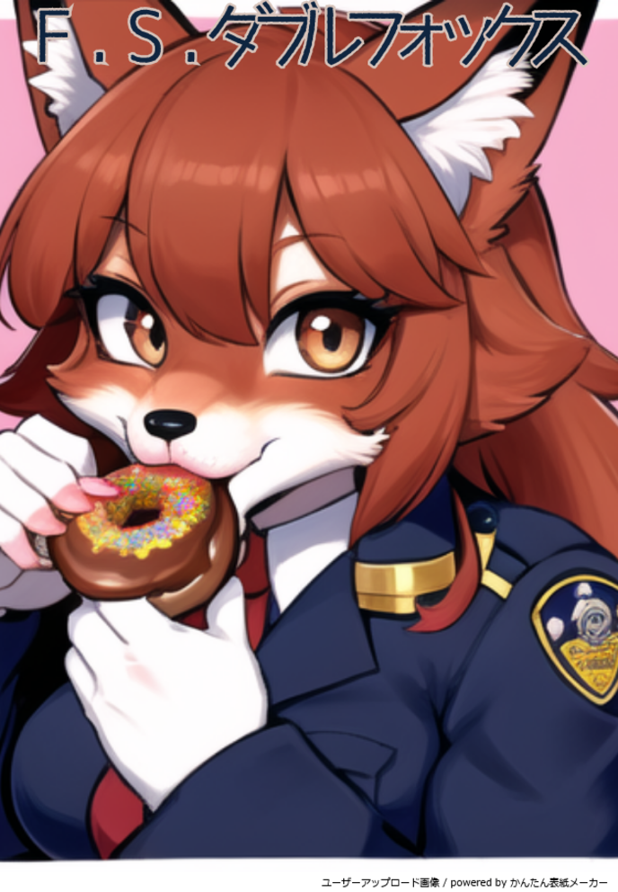 くんくんと犬科特有の突き出したマズルでドーナツの甘い香りに胸躍らせ、細長い口をだらしなく開いて、人より長い舌でぺろりと舌なめずりしてはホットドッグのようにふっくらした茶色い尻尾を振るさまを、二足歩行と警察官の制服で取り繕わなければ、まさに駄犬、いや駄狐だ。
