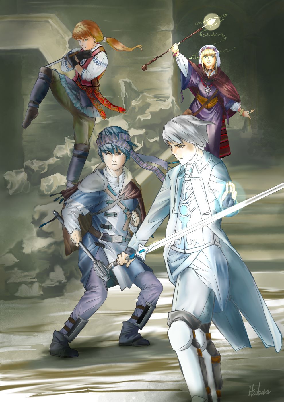 それにしても人物は盗賊・僧侶・魔法使い・聖騎士の順番に描いたんですが、その時その時で思いつきを盛り込んだんでチグハグしてるなぁ~と。
