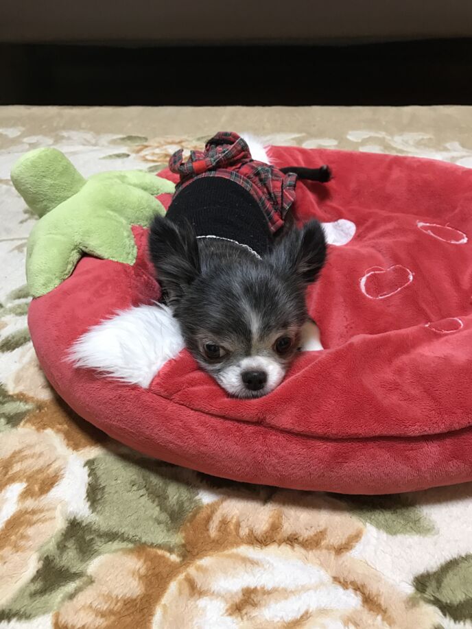 チワワのピースちゃんは元気な子でこれまで病気知らず。食う寝る遊ぶを満喫している。元気で可愛い子。