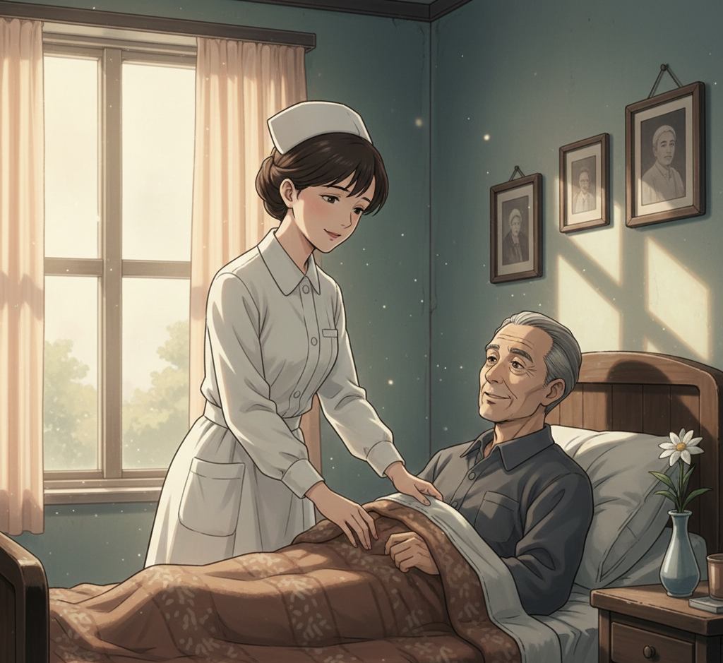 彼はパーキンソン病といふ、神経をじはじはと蝕み、自由を奪ひ去る病に侵されてゐた。しかし、老人は如何なる苦痛の中にありながらも、驚くほど端正な、気品に満ちた振る舞いを崩さなかつた。その言葉遣いは、古き良き時代の教育を受けた者特有の硬質さと優雅さを湛へ、三井が薬を運び、あるいは汚れた衣類を替へる度に、必ず「ありがとう」と、銀鼠色の空に差す一筋の光の如き微笑を見せたのである。