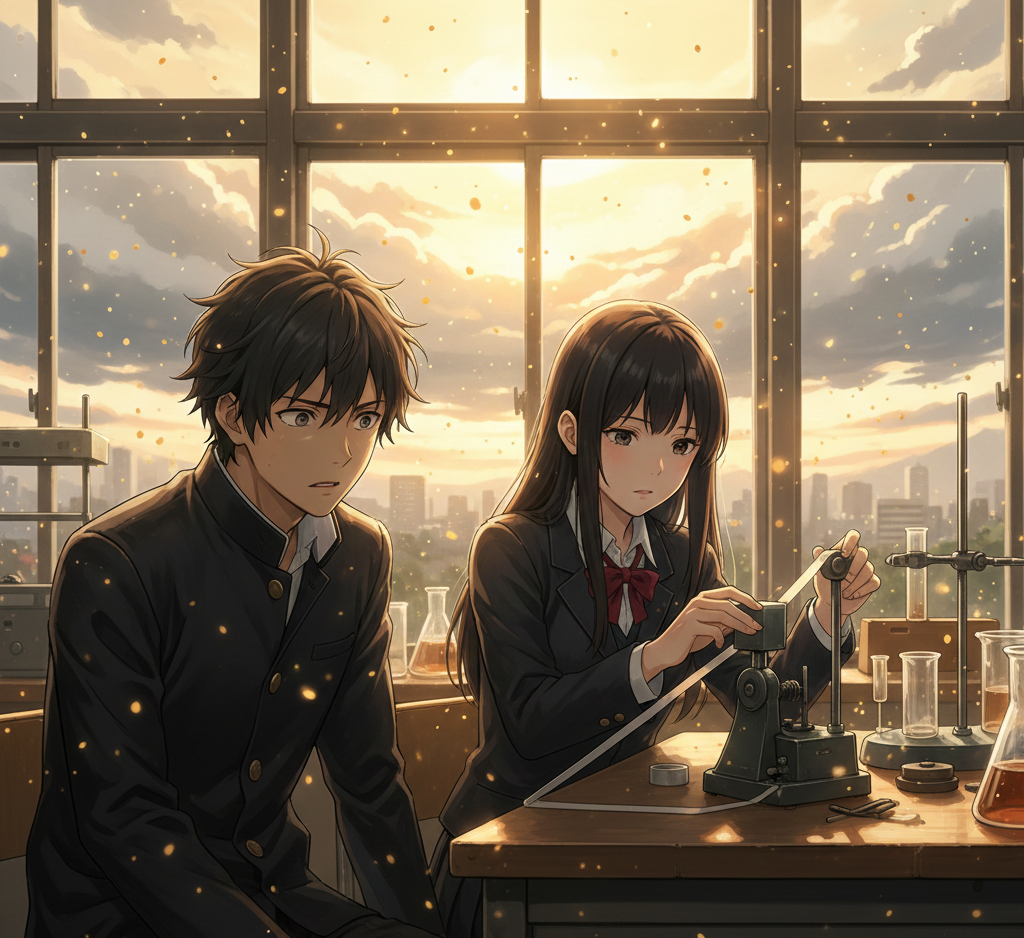 華は、記録タイマーの扱いに苦戦していた。その手つきは、あたかも壊れやすい小鳥の卵を扱うかのように危うい。僕は自らの受験勉強の時間を削られているという焦燥(せうさう)を感じながらも、彼女の無防備なうなじや、記録紙を見つめる真剣な横顔に、忌まわしいほど目を奪われていた。それは理知的な思考を麻痺させる、一種の毒薬のような美しさである。