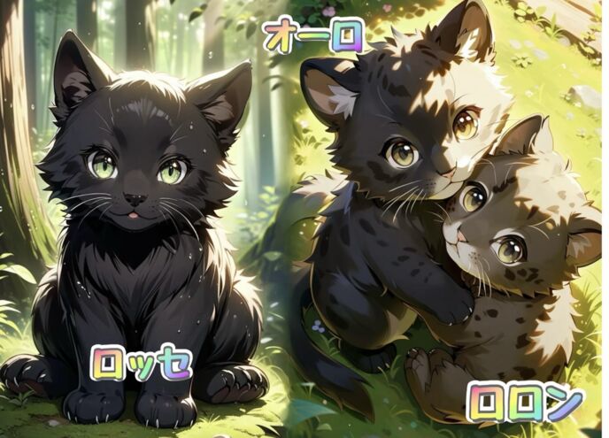 聖獣くろの子の分身、ろから始まる名前かろが付く名前のどちらかにしようと考えた。