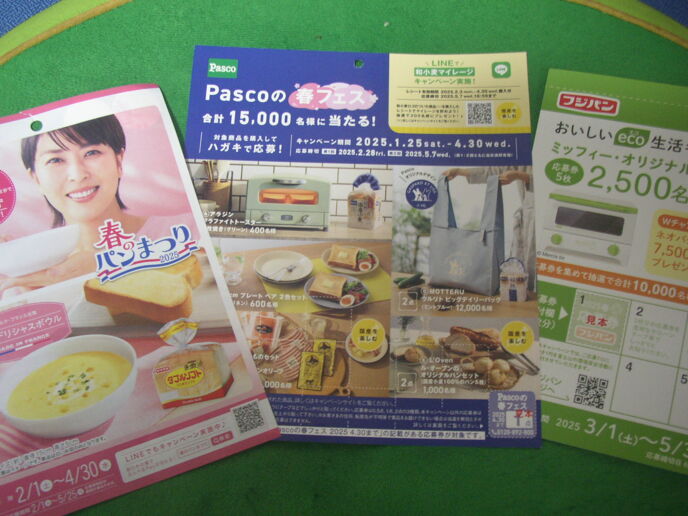 ちょうど今は(2025/3現在)、春のパン祭り(山崎製パン・パスコ・フジパン他)の真っ只中でございます。懸賞に興味の無い方にも広く知られている懸賞かと思われます。特にヤマザキ春のパン祭りは日本三大祭り唯一の生き残りで(ry(※)