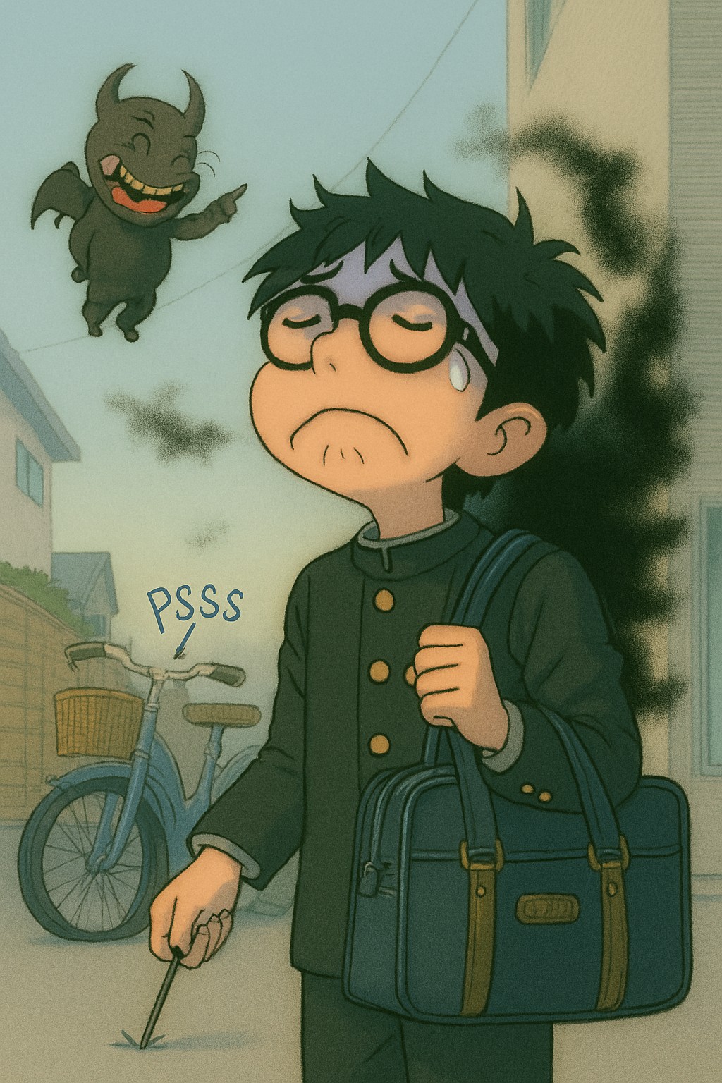 自転車をパンクさせ、