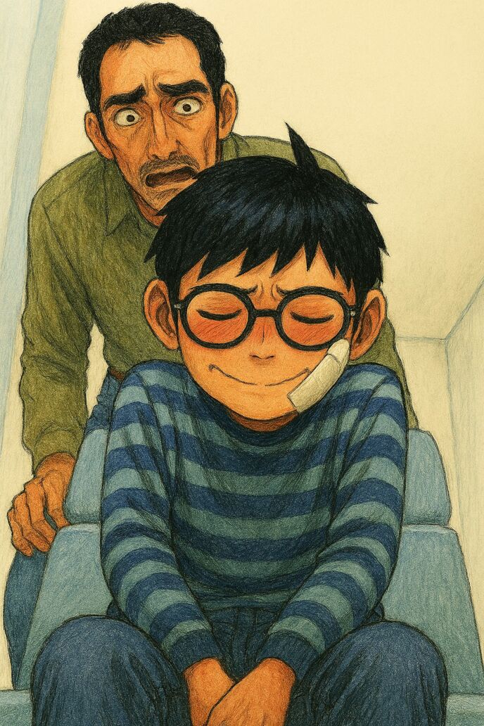 表情を父親と医師から隠すために