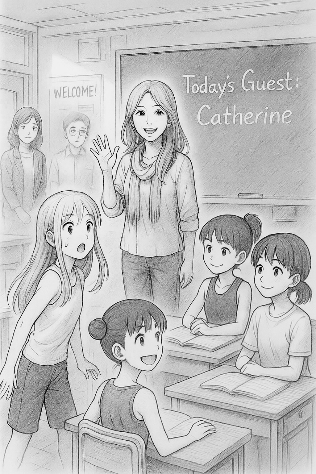 「ALTの授業のあと、先生が“見学もOK”って言ってくれたの。Hi, I’m Catherine, Rin’s mother.」