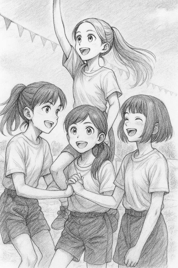 さちの肩に手を置き、4人は呼吸を整えながら顔を見合わせる。