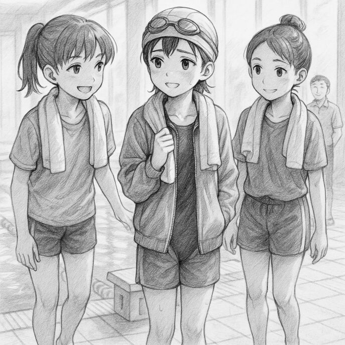 プールの向こうから、ハルの力強いストロークが近づいてくる。水をかく手の動き、無駄のないキック、自然な息継ぎ――すべてが美しかった。