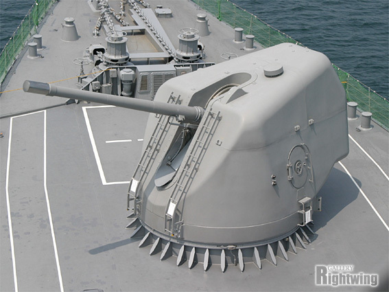 127mm単装速射砲。俯仰範囲はマイナス15度からプラス83度。旋回角度330度。旋回速度毎分40度。発射速度は毎分45発。