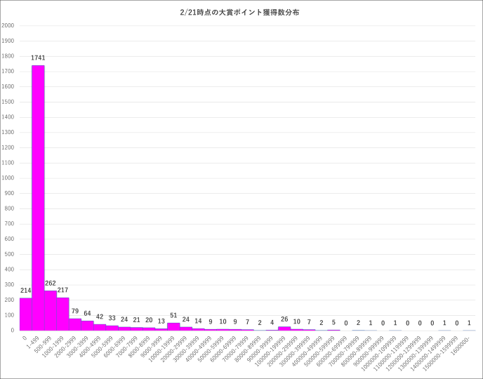 2021年2月21日時点の「大賞ポイントの分布」を記録がてら図にしてみましたので、ご覧ください。