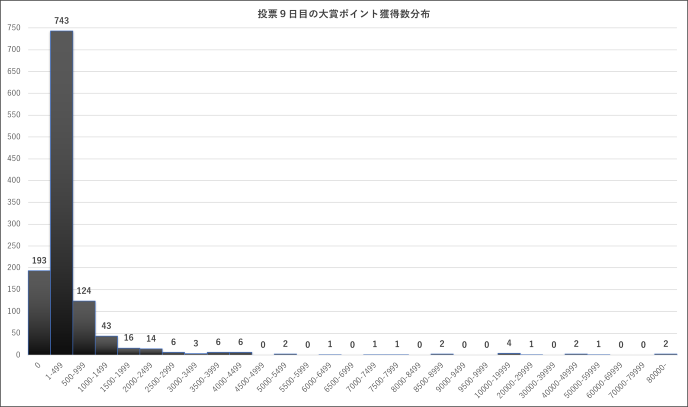 開始9日目の大賞ポイント数の分布についても調べてみました。