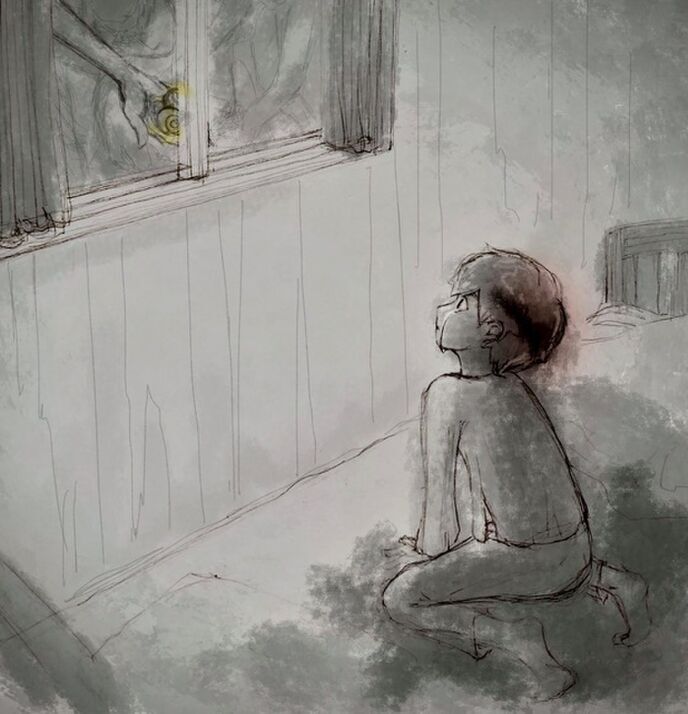 そんな彼の前へ、窓の外、父を強く抱きながら母の片手が差し出される。