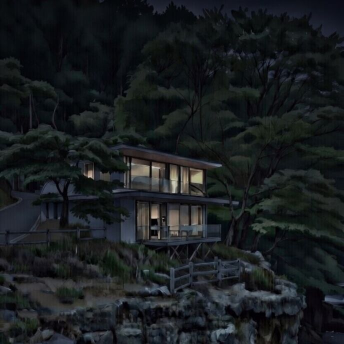 窓の外では、雷鳴が轟き、激しい雨が窓を叩きつけていた。