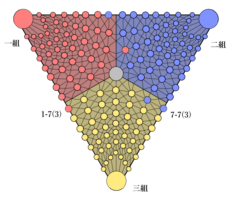 さっきの例であれば、1-1(3)、1-2(3)、1-3(3)……1-7(3)。これで、私たち三組の初期領地の1列目、1段目から7段目の『拠点』を表す訳だ。