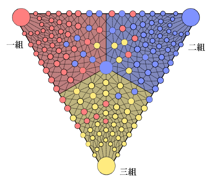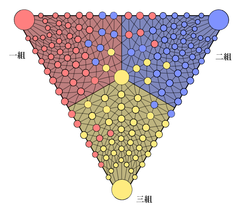 そして、三回戦第3セクション目を迎える頃には、三勢力の版図がアメーバのように入り乱れるような形になっていた。