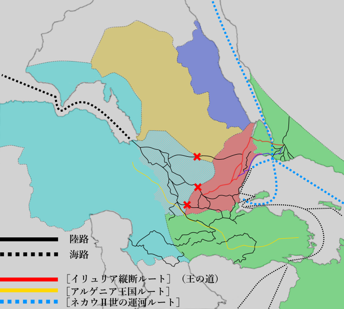 「[ネカウⅡ世の運河ルート]を通る商船をベレニケ港に誘導し[イリュリア縦断ルート]を使ってもらうことで延命していますが、仮に『未回収のイリュリア』を巡る戦争が落ち着いたところで、果たして[パルティア-イリュリア]間の交易路が本当に再び活発化するでしょうか」