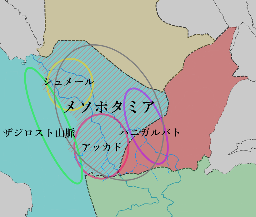 それらを三国を纏めた総称が『メソポタミア』だ。意味は「川の間の地域」。その名の通り、メソポタミアは二つの大きな川、プラトゥム・イディギナ川と共存する土地で、ここの肥沃な土地はその二つの川の恩恵によって齎された。