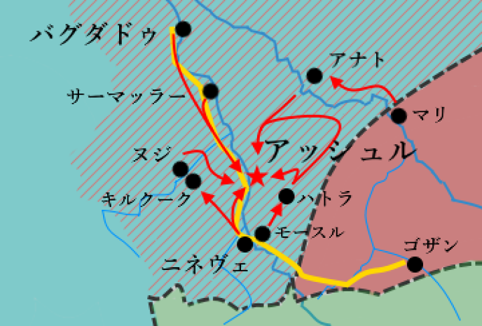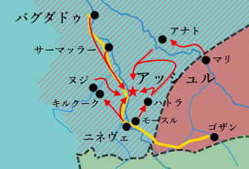 しかし、ルシュディーの指摘はそんなこととは関係なく、バグダドゥへ侵攻ルートがないのにも関わらず、バグダドゥから侵攻ルートの矢印が始まっていることだろう。