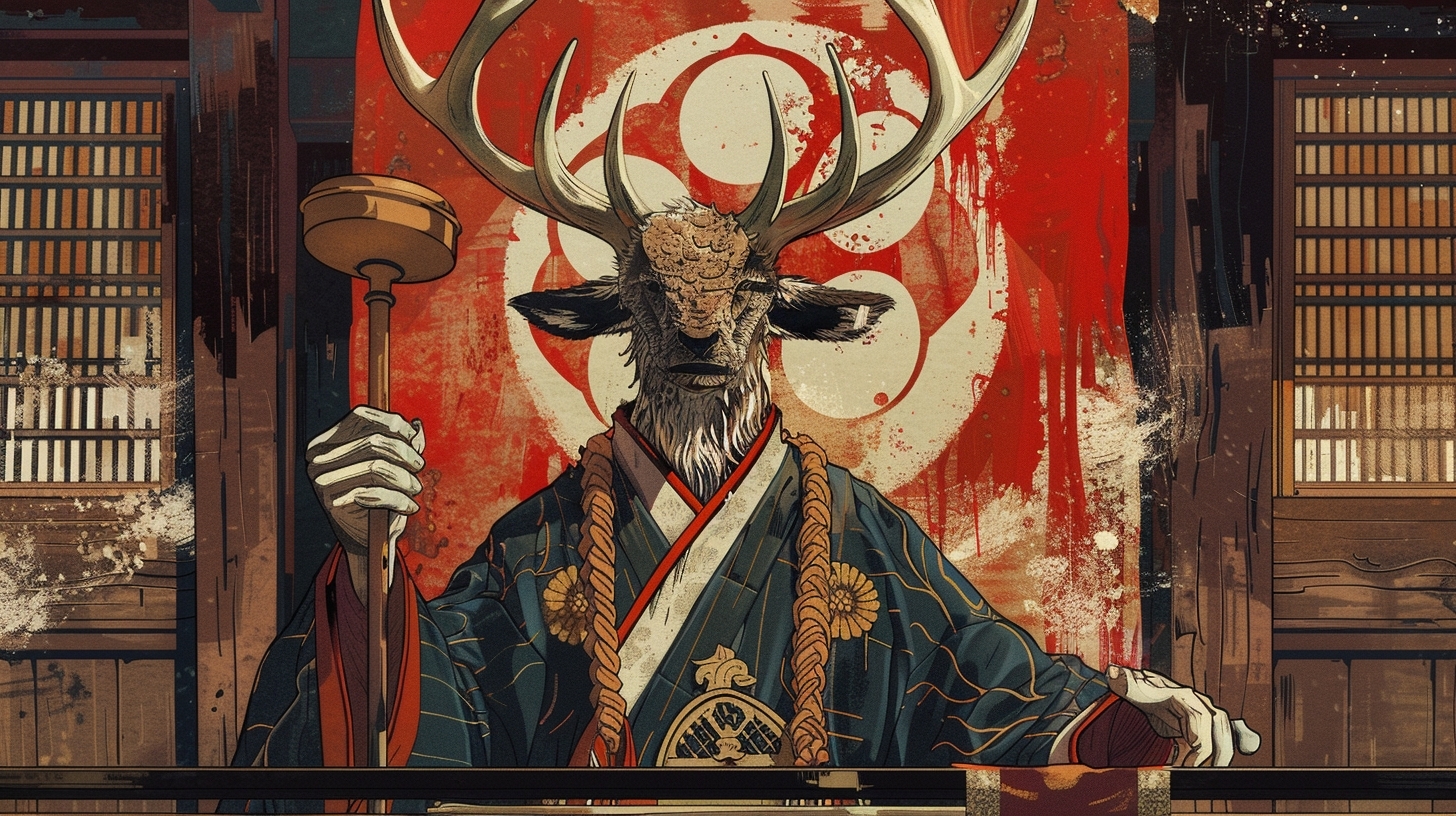 鹿の姿に着物を着ており、裁判で扱うガベルを持っている。