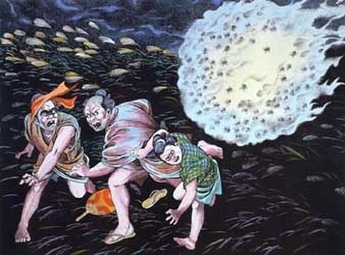 蜘蛛火の玉は空を飛び、近づいた人の次から次へと命を奪っていたと言われてます。