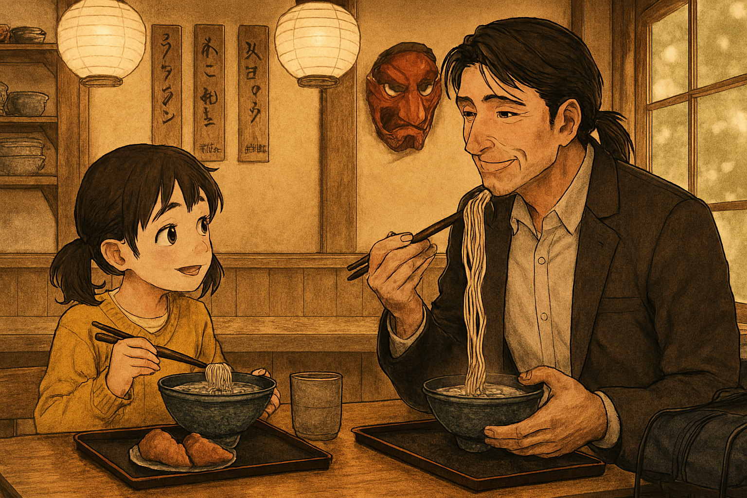 家や童ノ宮では袴姿でいることが多いけれど、この時はフォーマルな普段着。背が高くスラリとしたお父さんにはどっちも良く似合う、とうちは思った。