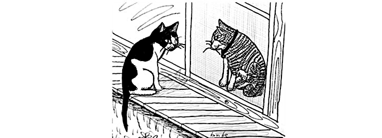 それでぼくが、人間が「縁側」と呼ぶ、岩場のような場所に飛び乗ったら、ぼくはその猫と同じくらいの高さになり、それでぼくはその猫をよく見る事が出来た。