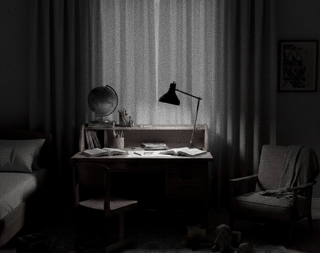 父親がそっとドアを開けると、少女は兄の部屋に駆け込んだ。