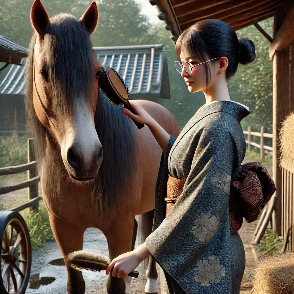 村人たちは早朝から動き出していた。男性たちは馬小屋で餌を与え、馬の背に軽くブラシをかけながら、静かに作業を進めている。その傍らでは、井戸端に集まった女性たちが水を汲みながら笑い声を交わしていた。どの顔も労働で少し日焼けしているが、その瞳には穏やかで温かな光が宿っている。