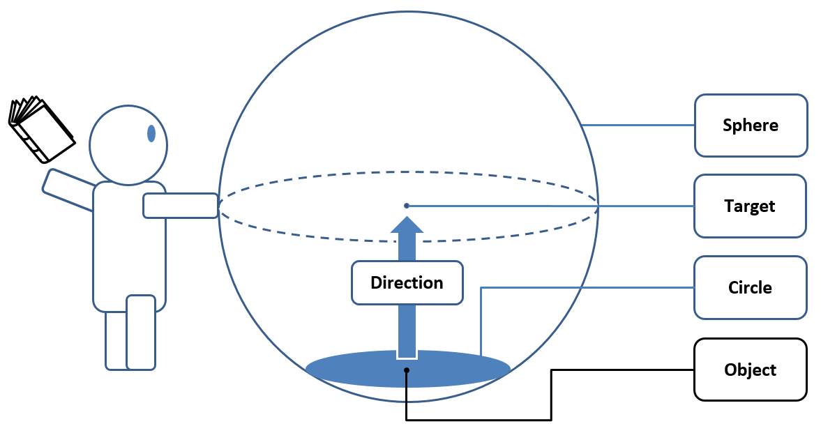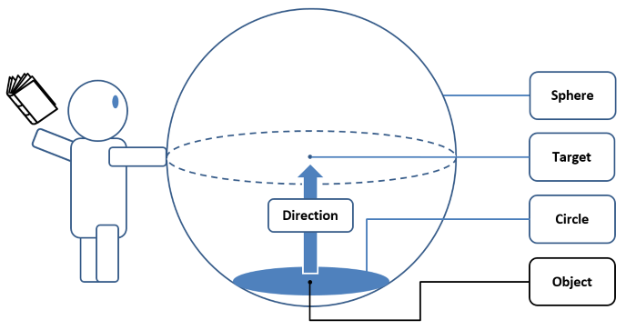 「右手を目標の方向へかざすんだ。腕の延長線上に、常に球体の中心がある事をイメージしてごらん」