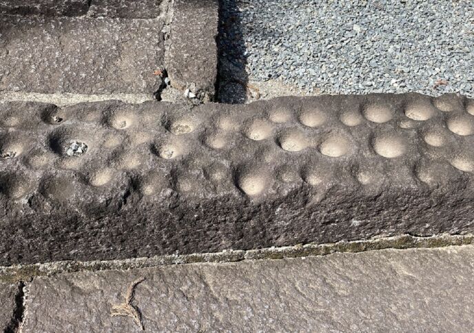 そしてもう1つ、海洋民族が運んだ文化として、教えてもらったのが「盃状穴」である。私自身、初めて聞いた言葉であったが、読んで字のごとく盃状、つまり丸く、石に掘られた穴のことである。