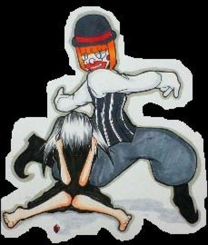 彼女は顔をしかめ、殺気を感じたのか少しずつ重い足を引きずりピエロから離れようとした。