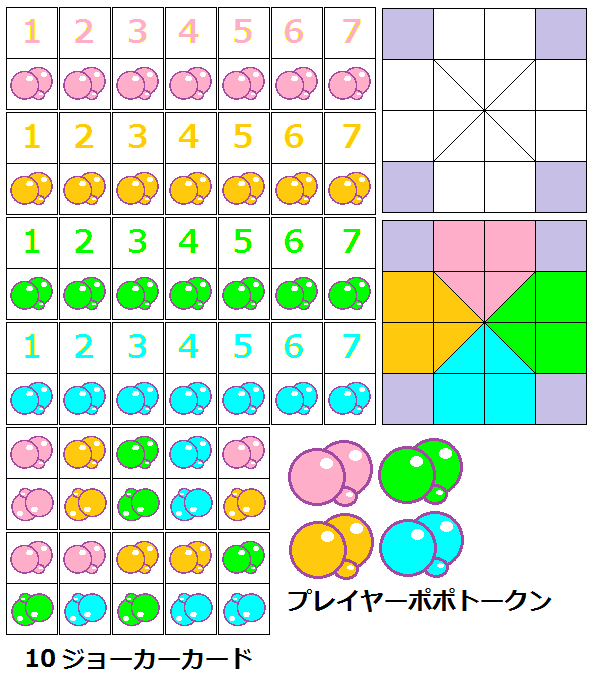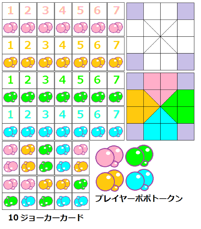 - 28 db 4 színben, színenként 7 db, 1től 7ig számozva
